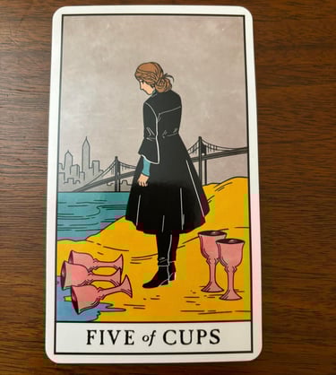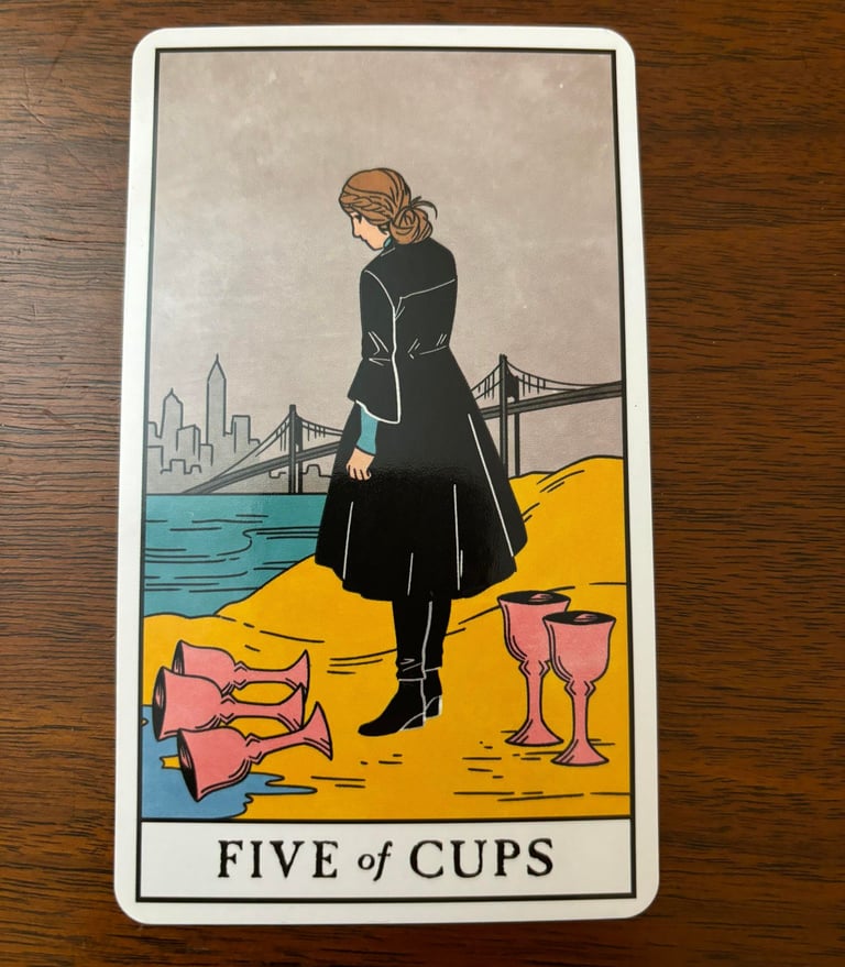 Loss and Grief: The Five of Cups often signifies experiencing a loss, disappointment, or emotional setback. It could relate to relationships, projects, or dreams that have not turned out as expected.