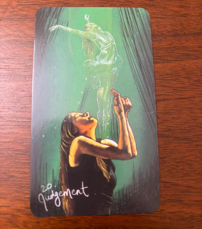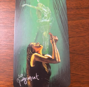 The Judgement card is marked as the 20th card of the Major Arcana set in tarot. The Judgement card often features an angel blowing a trumpet. Below, people are rising from their graves, symbolizing resurrection and awakening. In other interpretations, it may be a figure resting upon a tomb right before a burial, with a beam of light shining down upon the grave. It may also also display a figure reaching out to the heavens, like in the one pictured below from the Light Seer's Tarot deck. Whichever the case may be, this can be an intimidating card, and summon feelings of either guilt or vindication.