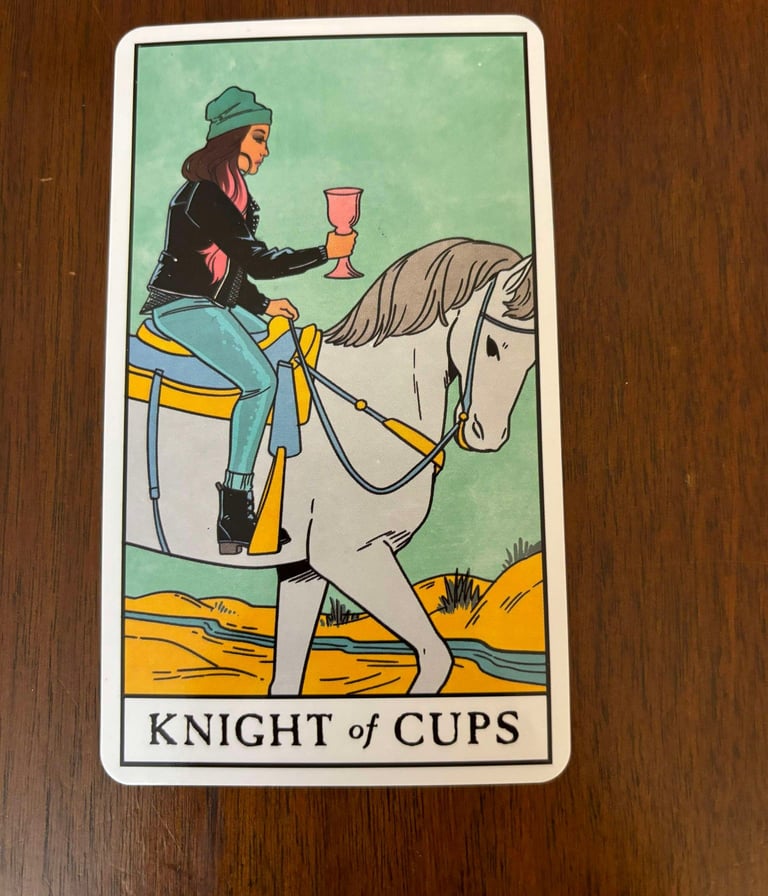Romantic and Charming: The Knight of Cups often represents a person who is deeply romantic and charming, someone who wears their heart on their sleeve and is guided by their emotions and passions.