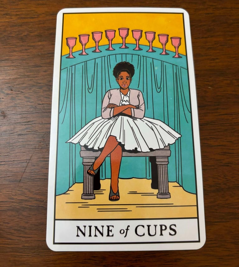 Overall, the Nine of Cups is a positive card that symbolizes emotional satisfaction, wishes coming true, and the joy of achieving what you have desired. It encourages a focus on gratitude and appreciating the good things in life.
