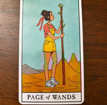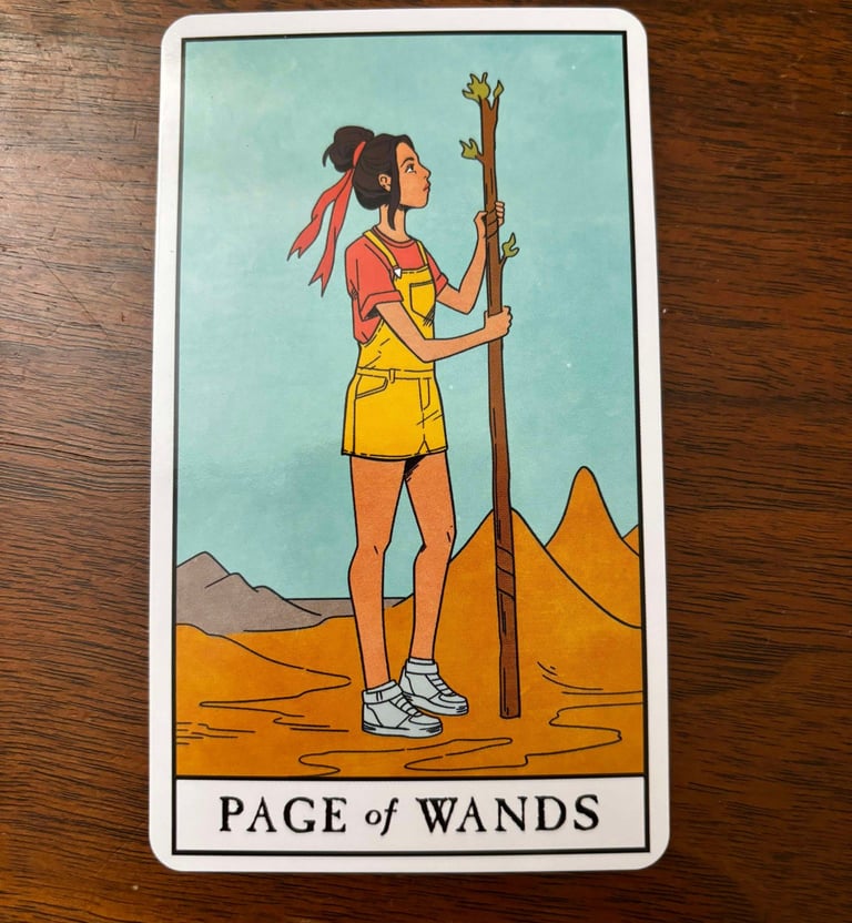 Figure: The Page of Wands typically depicts a young person holding a wand, often looking upward or toward the horizon, symbolizing curiosity and aspiration.