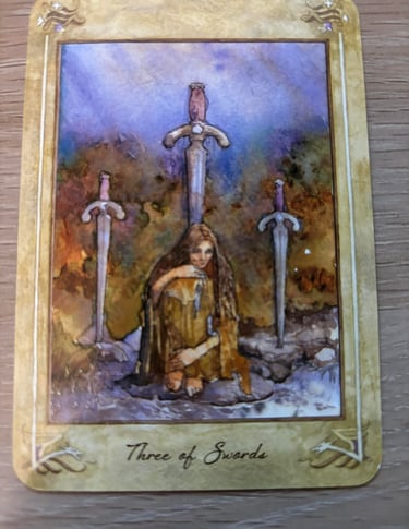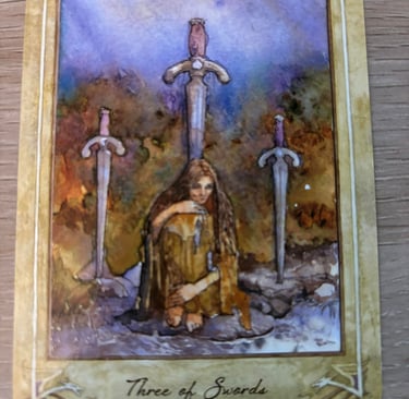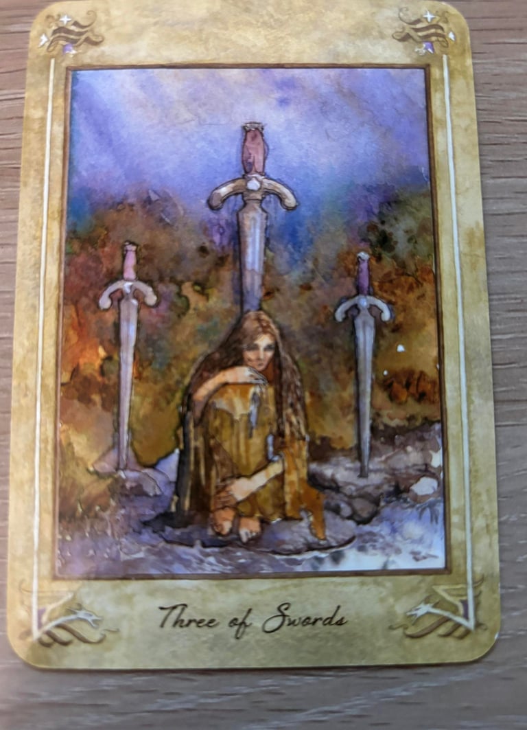 Heartbreak and Sorrow: The Three of Swords typically signifies a period of emotional pain and sorrow. This can stem from various sources, such as relationships, personal loss, or betrayal.