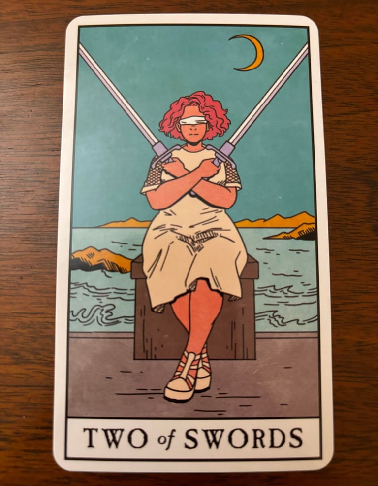 When the Two of Swords appears upright in a reading, it often indicates: