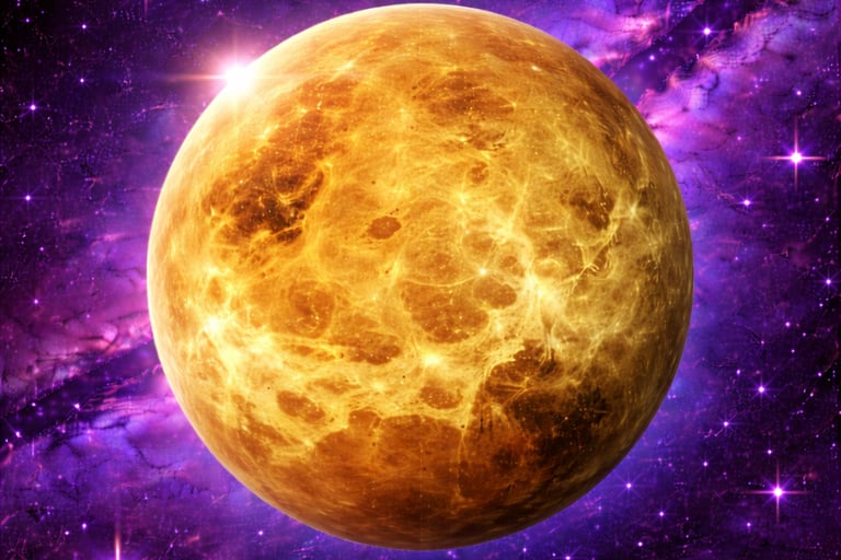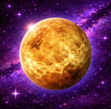 Venus, the second planet from the Sun, represents the forces of love, beauty, pleasure, and connection. In astrology, it governs how we relate to others, what we value, and how we experience joy.