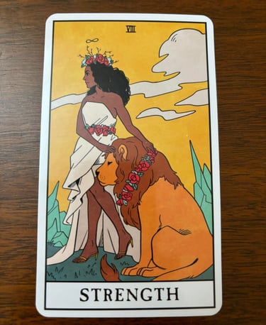 One of my personal favorite cards. Whenever I see this card pop up in a reading as an upright character, I'm immediately drawn to it's meaning with whatever I may be struggling with, or see a path to victory in others for what they desire. Take care to note that a reverse meaning of this card may be quite the opposite: It can suggest a lack of confidence, self-doubt, or feeling overwhelmed by challenges. The reversed card may point to difficulties in controlling one’s emotions or impulses, leading to outbursts or impulsive behavior.