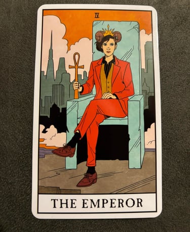 The Emperor card in tarot is a symbol of authority, stability, and structure. It often depicts a wise and powerful ruler sitting on a throne, usually holding a scepter or an orb, signifying their dominion and control over their realm. They represent leadership, authority, and control. They embody the qualities of a strong, decisive leader who takes charge of situations and makes important decisions with confidence and clarity.